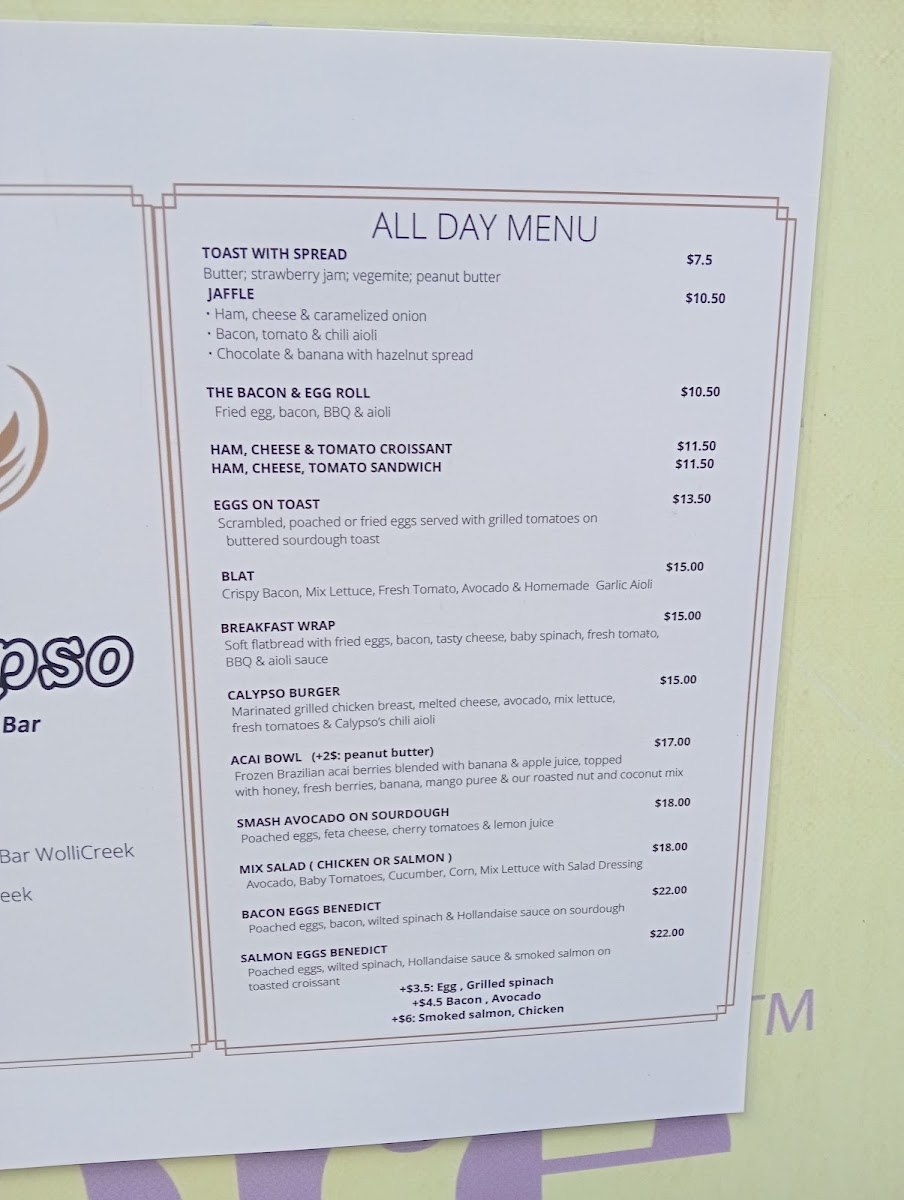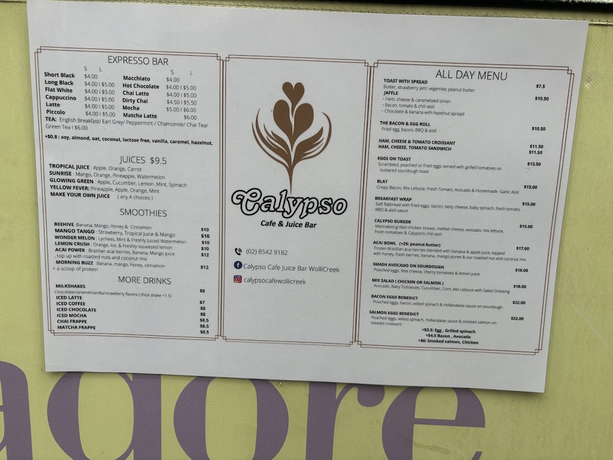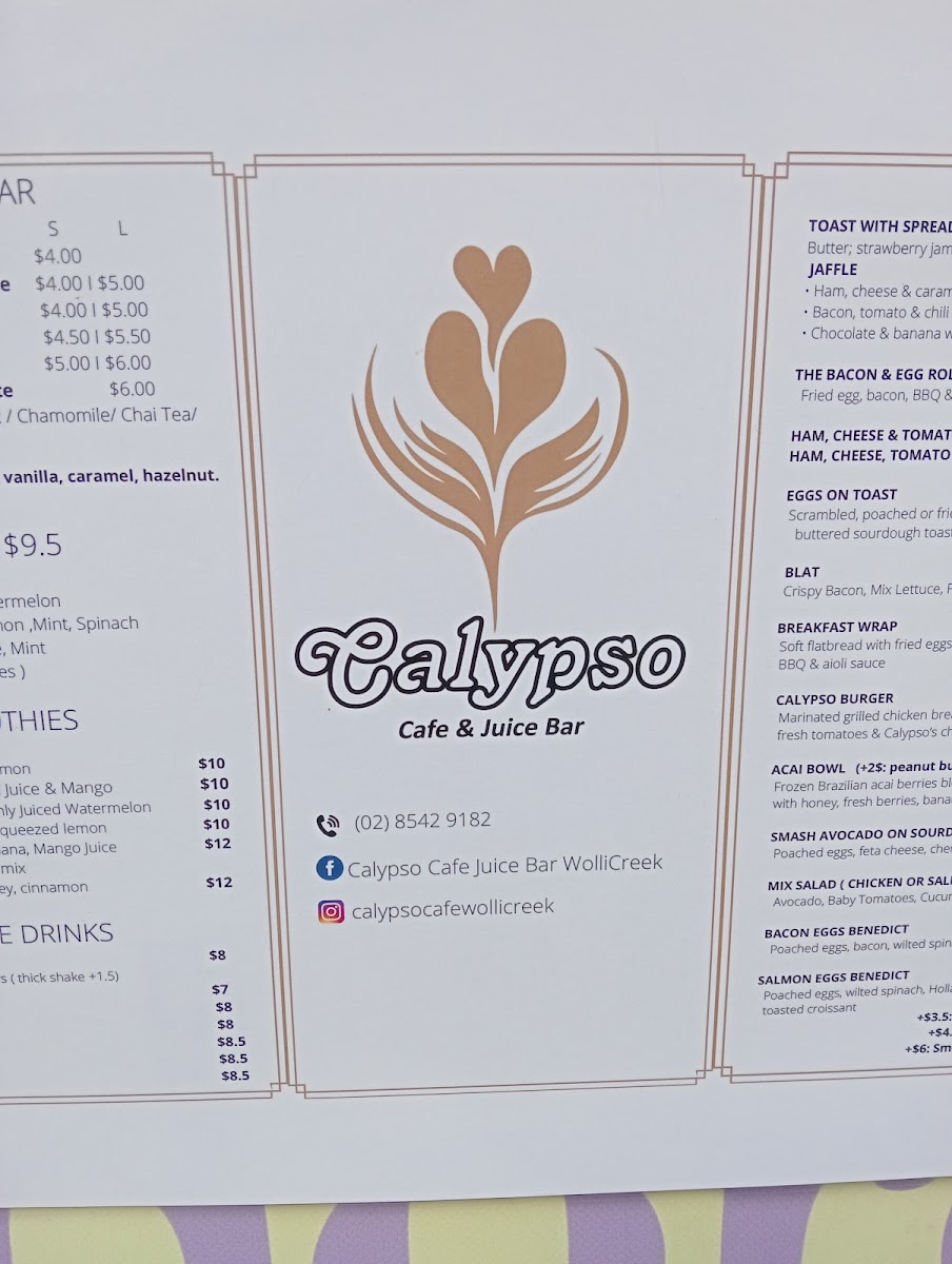 Welcome to Calypso Cafe & Juice Bar, your cozy spot at 3/20 Levey St, Wolli Creek, where every dish tells a story. Their menu boasts a delightful range of offerings designed to please all palates.